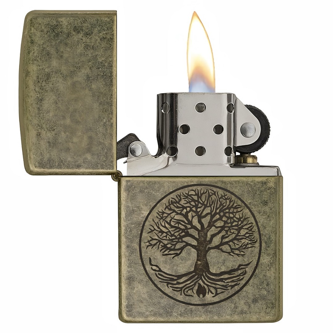 Bricheta Zippo Tree of Life din alamă antică Antique Brass™ este un adevărat simbol al renașterii, forței și al unei conexiuni nesfârșite cu natura. Corpul său este gravat meticulos cu un copac al vieții întins, realizat folosind tehnologia Lustre: coroana sa pare să prindă viață în lumină blândă, în timp ce la baza rădăcinilor sale arde o mică flacără Zippo – un simbol al energiei care susține toată viața. Această brichetă vine într-o cutie cadou elegantă și este disponibilă atât cu insert standard, cât și cu o versiune sigură pentru SUA. Corpul său complet metalic și designul legendar rezistent la vânt fac din această brichetă un companion de încredere în orice mediu. Pentru cele mai bune performanțe, recomandăm utilizarea combustibilului, a pietrelor de silex și a fitilului Zippo originale. Fabricată în SUA și susținută de o garanție pe viață, această brichetă combină estetica, simbolismul și calitatea iconică Zippo.