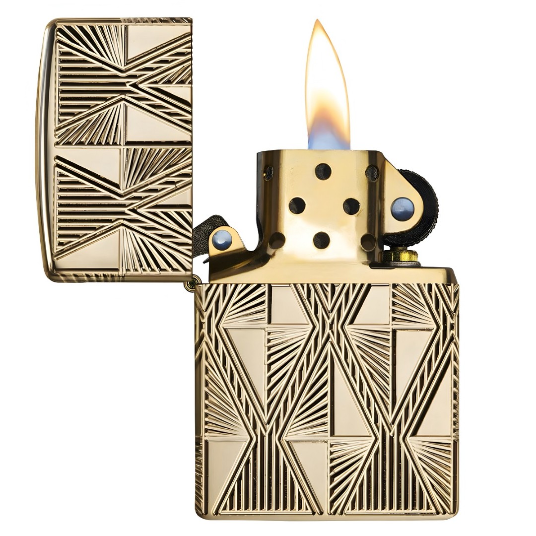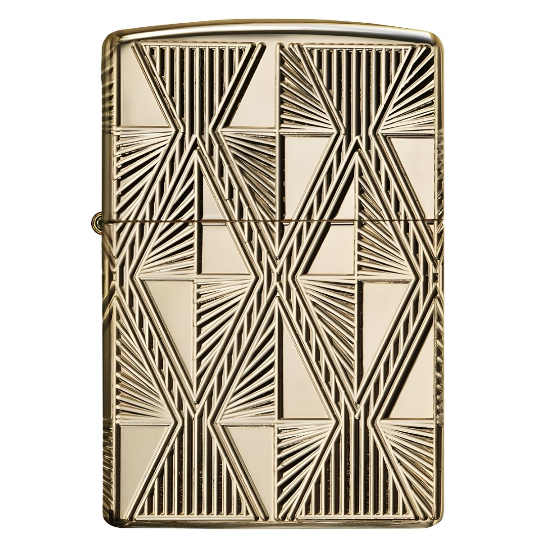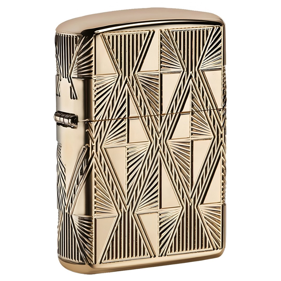 Această brichetă luxoasă Zippo Armor® High Polish Gold Plate impresionează prin textura sa multistrat și prin designul rafinat. Tehnologia de gravură Zippo 360° MultiCut creează un model elegant din romburi strălucitoare și linii luminoase, care se reflectă spectaculos pe suprafața aurită, perfect lustruită. Un detaliu special al designului este „diamantul” roșu semitransparent, umplut cu rășină epoxidică și integrat cu grijă în partea laterală a carcasei. Bricheta este realizată dintr-un corp metalic solid din seria Armor®, care este aproximativ de 1,5 ori mai gros decât carcasa standard Zippo, oferindu-i rezistență suplimentară și un aspect premium. Construcția windproof specifică Zippo, cu sunetul caracteristic „clic”, asigură funcționarea fiabilă aproape în orice condiții. Modelul este reutilizabil și conceput pentru o durată lungă de viață. Fabricată în SUA, se livrează într-o cutie cadou luxoasă și beneficiază de garanție pe viață. Pentru performanță optimă se recomandă utilizarea combustibilului, pietrelor și fitilelor originale Zippo.
