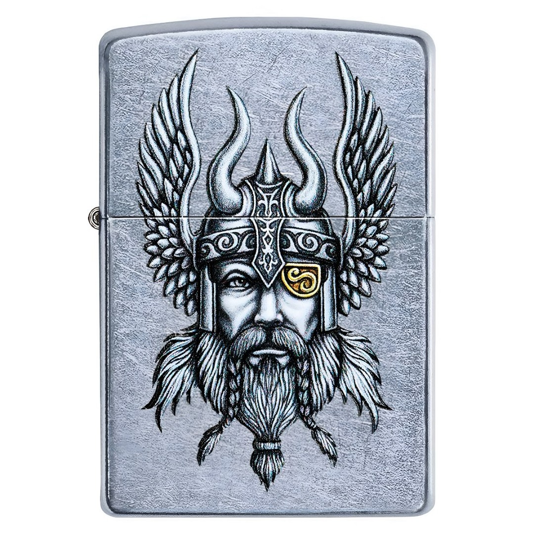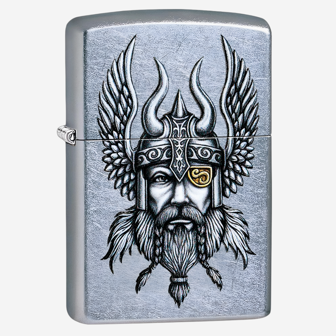 Designul Nordic Viking apare pentru prima dată pe bricheta rezistentă la vânt Street Chrome™ de la Zippo. Acest design a fost inițial desenat manual cu creion și cerneală și apoi transferat cu experiență în format digital pentru a păstra detaliile complexe și umbrirea. Acest lucru îi permite să fie reprodus folosind procesul de imprimare coloră Zippo. Acest design Nordic Viking adaugă personalitate și stil brichetei dvs. Ea se vinde într-o cutie cadou, ceea ce o face un cadou grozav. Este recomandat să alimentați bricheta cu combustibil Zippo pentru performanțe optime.