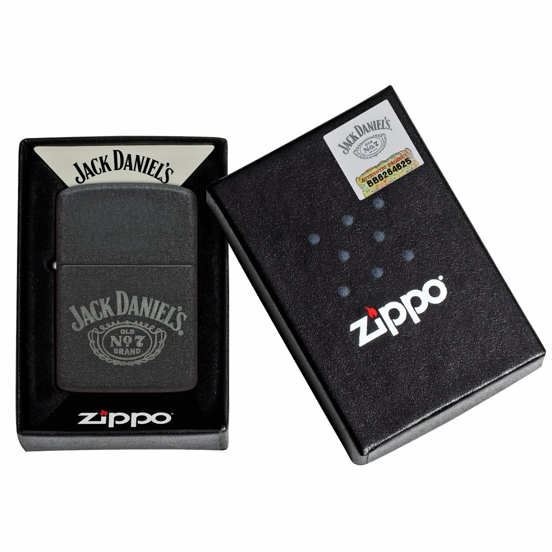 Celebrul logo Jack Daniel’s No. 7 decorează această brichetă stilată Zippo Black Crackle 1941 Replica, realizată într-un design elegant și îndrăzneț, cu gravură laser. Finisajul texturat Black Crackle oferă modelului un caracter vintage și îi subliniază stilul distinct. Bricheta are o construcție integral metalică și este echipată cu celebra structură rezistentă la vânt și cu inconfundabilul „click” Zippo, funcționând fiabil în aproape orice condiții. Este reutilizabilă și concepută pentru o durată lungă de utilizare. Modelul este fabricat în SUA, livrat într-o cutie cadou și beneficiază de garanție pe viață. Pentru performanță optimă se recomandă utilizarea combustibilului, pietrelor și fitilurilor originale Zippo.