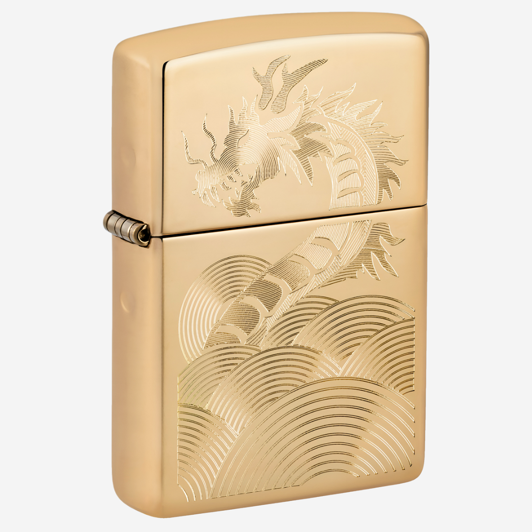 Această brichetă clasică Zippo din alamă lustruită este decorată cu un desen abstract de dragon, realizat într-un model complex prin gravură automată. Detaliile minuțioase conferă accesoriului un caracter expresiv și original, evidențiindu-i eleganța. Bricheta are un corp metalic integral și este echipată cu construcția vânt-proof caracteristică Zippo, cu sunetul distinctiv de „clic”, asigurând funcționarea fiabilă aproape în orice condiții. Modelul este reutilizabil și proiectat pentru o durată lungă de viață. Fabricată în SUA, bricheta se livrează într-o cutie cadou și beneficiază de garanție pe viață. Pentru performanță optimă, se recomandă utilizarea combustibilului, pietrelor și fitilelor originale Zippo.
