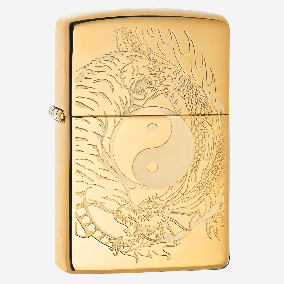 Această brichetă simbolizează armonia și complementaritatea, precum Yin și Yang, tigru și dragon. Cu un design de tigru și dragon în jurul simbolurilor Yin și Yang, acest design este un cadou perfect pentru celălalt semnificativ. Furnizată într-o cutie cadou, această brichetă Zippo este expresia perfectă a stilului și calității. Are toate caracteristicile designului original Zippo rezistent la vânt, asigurând performanțe fiabile în toate condițiile. Fabricată în SUA folosind cele mai bune materiale, această brichetă oferă reutilizabilitate și durabilitate. Pentru o performanță optimă, vă recomandăm să utilizați combustibil, cremene și fitiluri Zippo originale premium. Lasă această brichetă să devină un simbol al iubirii și armoniei dvs, completându-se unul pe celălalt ca tigrul și dragonul din mitologia chineză.