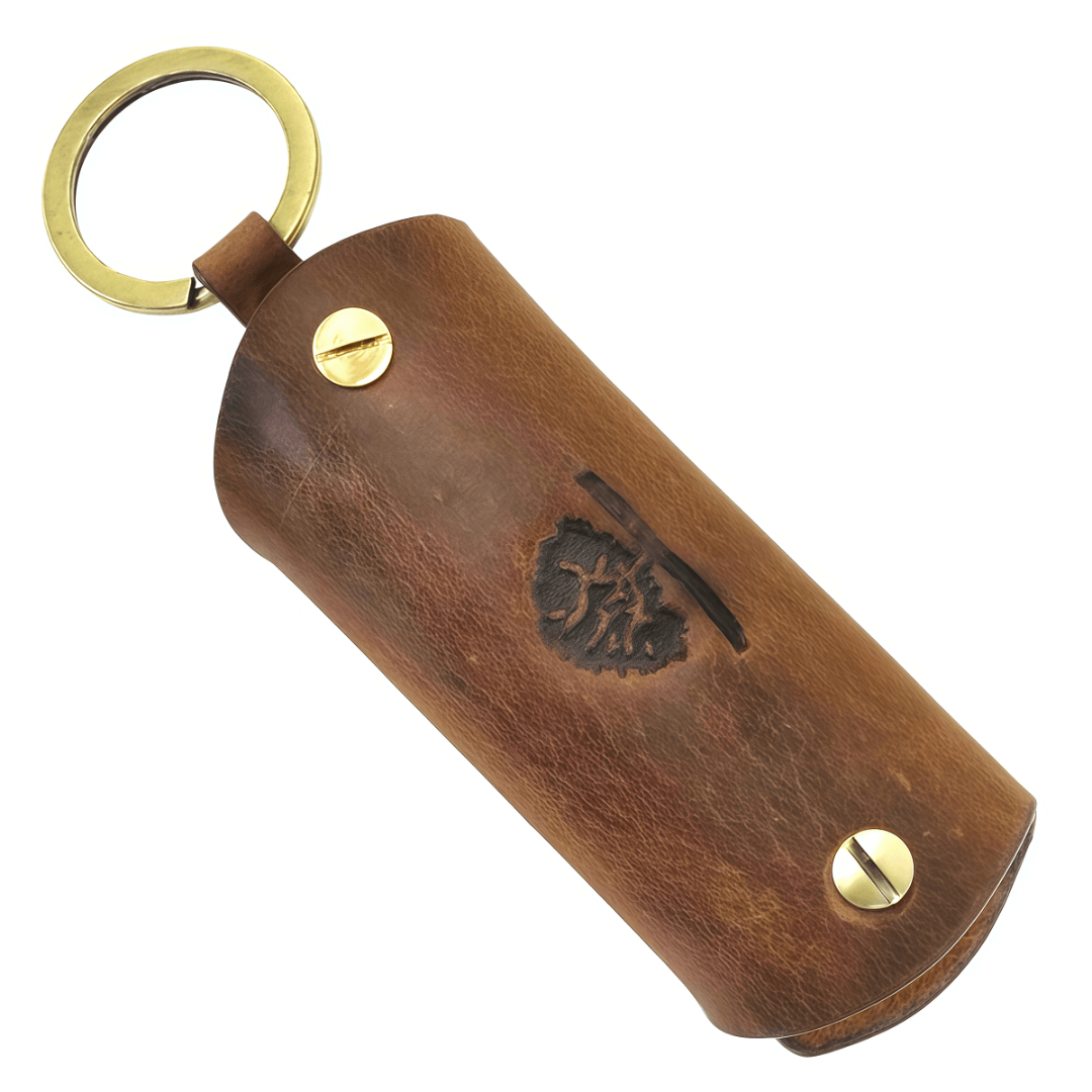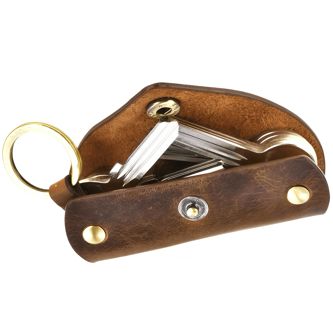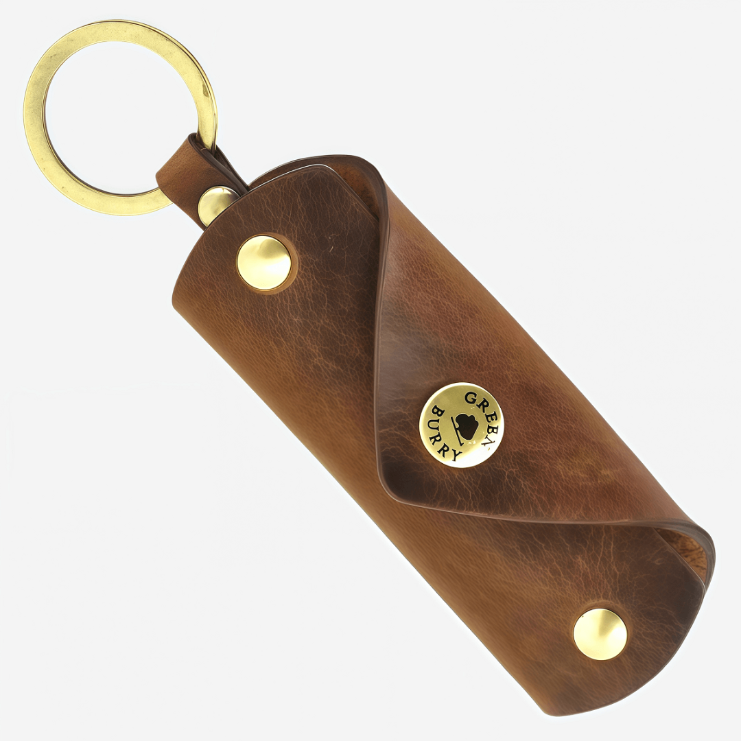 Ключница Vintage Greenburry с застежкой-кнопкой выполнена из натуральной кожи высокого качества, обработанной вручную с использованием растительных дубильных веществ. Такой способ выделки придает изделию уникальный характер и выразительную текстуру в оттенке классического «состаренного» коричневого цвета. Внутри предусмотрено место для восьми ключей типа «YALE», а также наружное кольцо для дополнительного крепления. Каждая ключница создается вручную, поэтому каждое изделие неповторимо и может иметь небольшие различия по оттенку и фактуре, что подчеркивает его аутентичность. Со временем кожа изменяет свой внешний вид — может слегка потемнеть или приобрести иную текстуру, и это не дефект, а естественный процесс, подтверждающий натуральность материала.