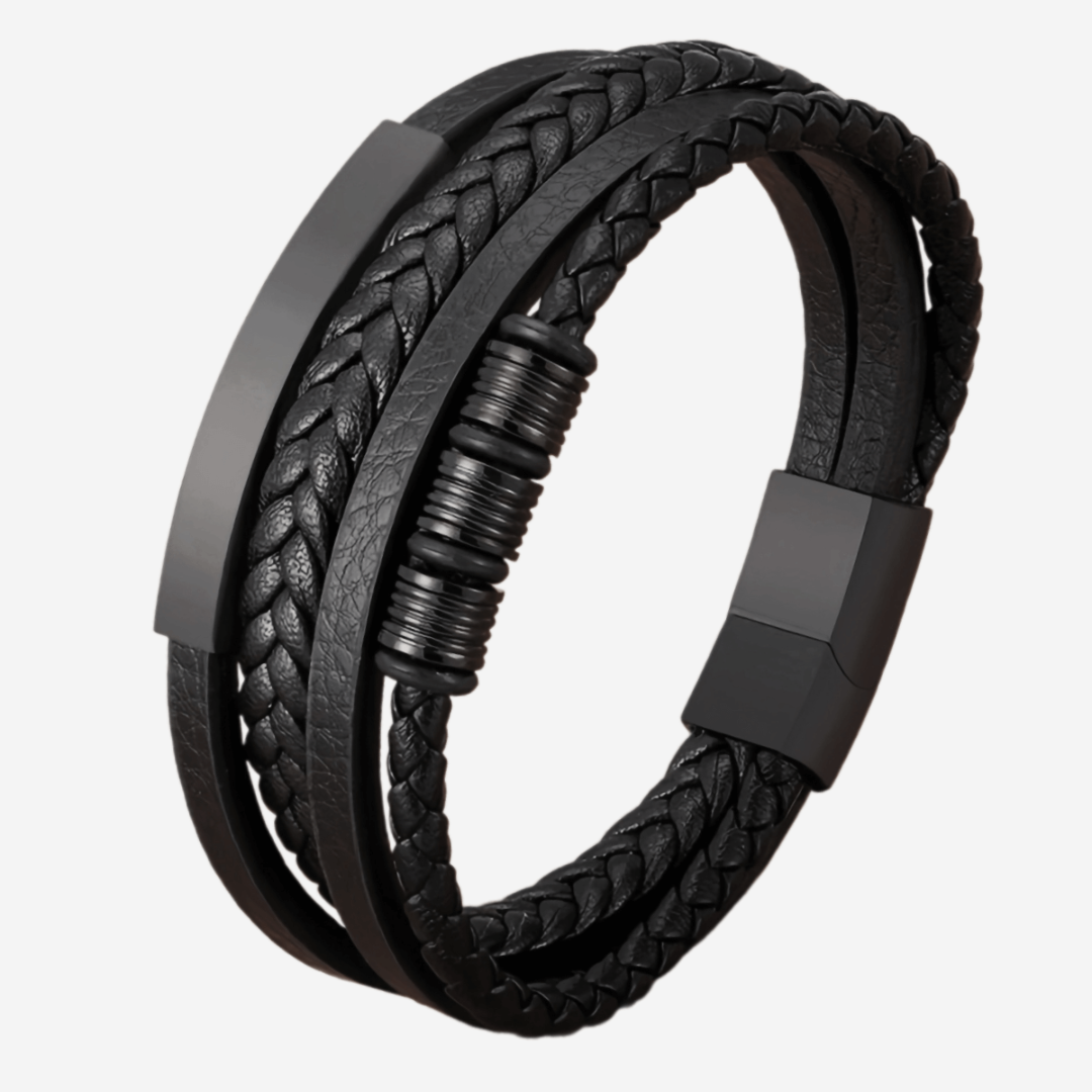 Этот мужской браслет изготовлен вручную из высококачественной натуральной кожи и оснащен широкими черными кольцами, которые придают ему неповторимый вид. Магнитная застежка обеспечивает простоту и безопасность использования, обеспечивая при этом максимальный комфорт при ношении. Тонкая тройная полировка гарантирует гладкую и приятную поверхность. Используемые материалы премиум-класса и технология обработки гарантируют, что цвет браслета не испортится с течением времени, сохраняя его безупречный внешний вид в течение длительного времени. Изготовленный вручную, каждый браслет имеет уникальный характер, отражающий мастерство мастера. Этот браслет идеально подойдет мужчинам, которые ценят качественный, прочный и стильный аксессуар. Широкие золотые кольца придают изделию дополнительную изысканность и индивидуальность и подходят как для повседневного, так и для торжественного ношения. Это элегантный и адаптируемый аксессуар, идеально подходящий для дополнения любого гардероба.