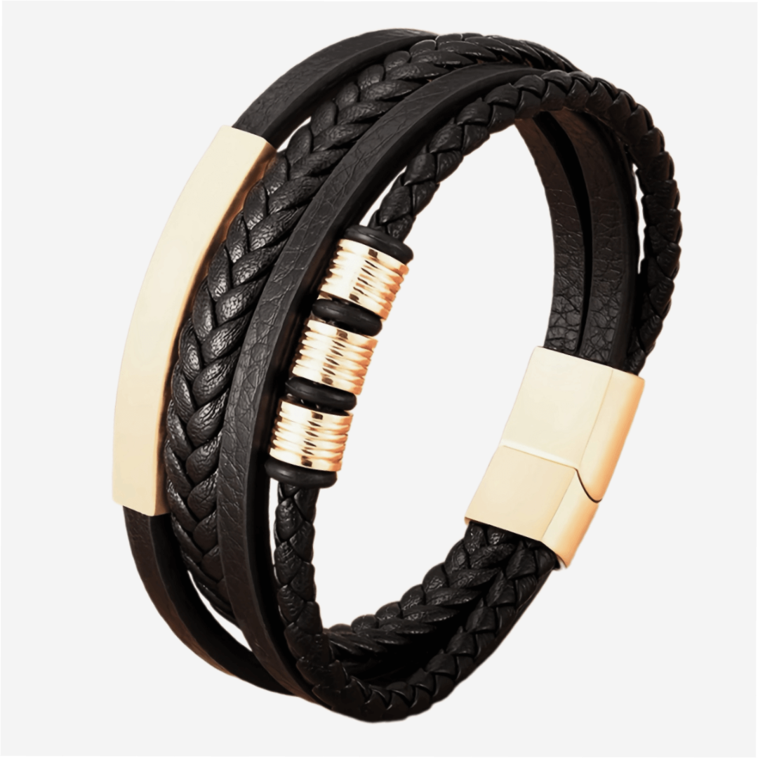 Этот мужской браслет из высококачественной натуральной кожи изготовлен вручную и дополнен широкими золотыми кольцами, которые придают ему неповторимый вид. Магнитная застежка обеспечивает простоту и безопасность использования, обеспечивая при этом максимальный комфорт при ношении. Тонкая тройная полировка гарантирует гладкую и приятную поверхность. Используемые материалы премиум-класса и технология обработки гарантируют, что цвет браслета не испортится с течением времени, сохраняя его безупречный внешний вид в течение длительного времени. Изготовленный вручную, каждый браслет имеет уникальный характер, отражающий мастерство мастера. Этот браслет идеально подойдет мужчинам, которые ценят качественный, прочный и стильный аксессуар. Широкие золотые кольца придают изделию дополнительную изысканность и индивидуальность и подходят как для повседневного, так и для торжественного ношения. Это элегантный и адаптируемый аксессуар, идеально подходящий для дополнения любого гардероба.