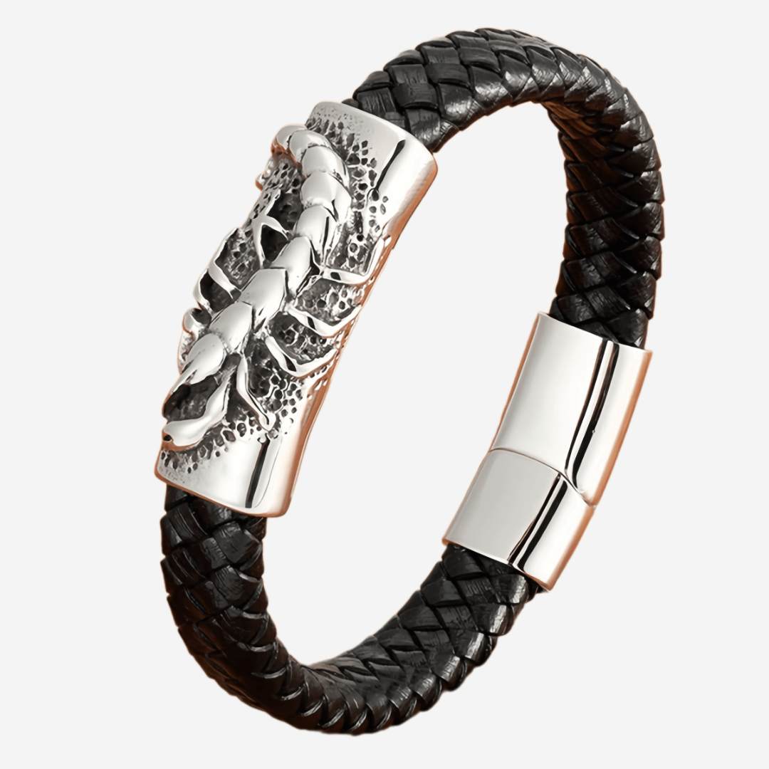 Этот мужской браслет из высококачественной натуральной кожи изготовлен вручную и украшен эмблемой скорпиона, добавляющей элемент загадочности и силы. Магнитная застежка обеспечивает простоту и безопасность использования, обеспечивая максимальный комфорт при ношении. Тонкая тройная полировка гарантирует гладкую и приятную поверхность. Используемые материалы премиум-класса и технология обработки гарантируют, что браслет сохранит безупречный цвет с течением времени и не будет поврежден. Изготовленный вручную, каждый браслет имеет уникальный характер, отражающий мастерство мастера. Этот браслет идеально подойдет мужчинам, которые ценят качественный, прочный и стильный аксессуар. Эмблема скорпиона придает изделию дополнительную изысканность и индивидуальность и подходит как для повседневного, так и для торжественного ношения. Это изысканный и адаптируемый аксессуар, который идеально дополнит любой гардероб.