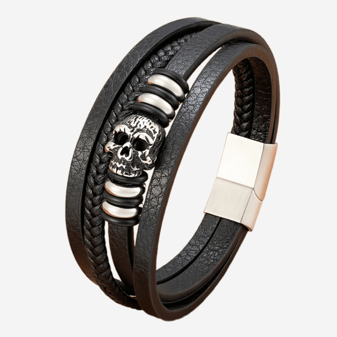 Мужской браслет из высококачественной натуральной кожи выполнен вручную и украшен фигуркой черепа, придающей ему нотку брутальности и утонченности. Магнитная застежка обеспечивает простоту и безопасность использования, обеспечивая максимальный комфорт при ношении. Тонкая тройная полировка гарантирует гладкую и приятную поверхность. Используемые материалы премиум-класса и технология обработки гарантируют, что браслет сохранит безупречный цвет с течением времени и не будет поврежден. Изготовленный вручную, каждый браслет имеет уникальный характер, отражающий мастерство мастера. Этот браслет идеально подойдет мужчинам, которые ценят качественный, прочный и стильный аксессуар. Фигура черепа добавляет индивидуальности и символизма, подходит как для повседневного, так и для торжественного ношения. Это изысканный и адаптируемый аксессуар, который идеально дополнит любой гардероб.