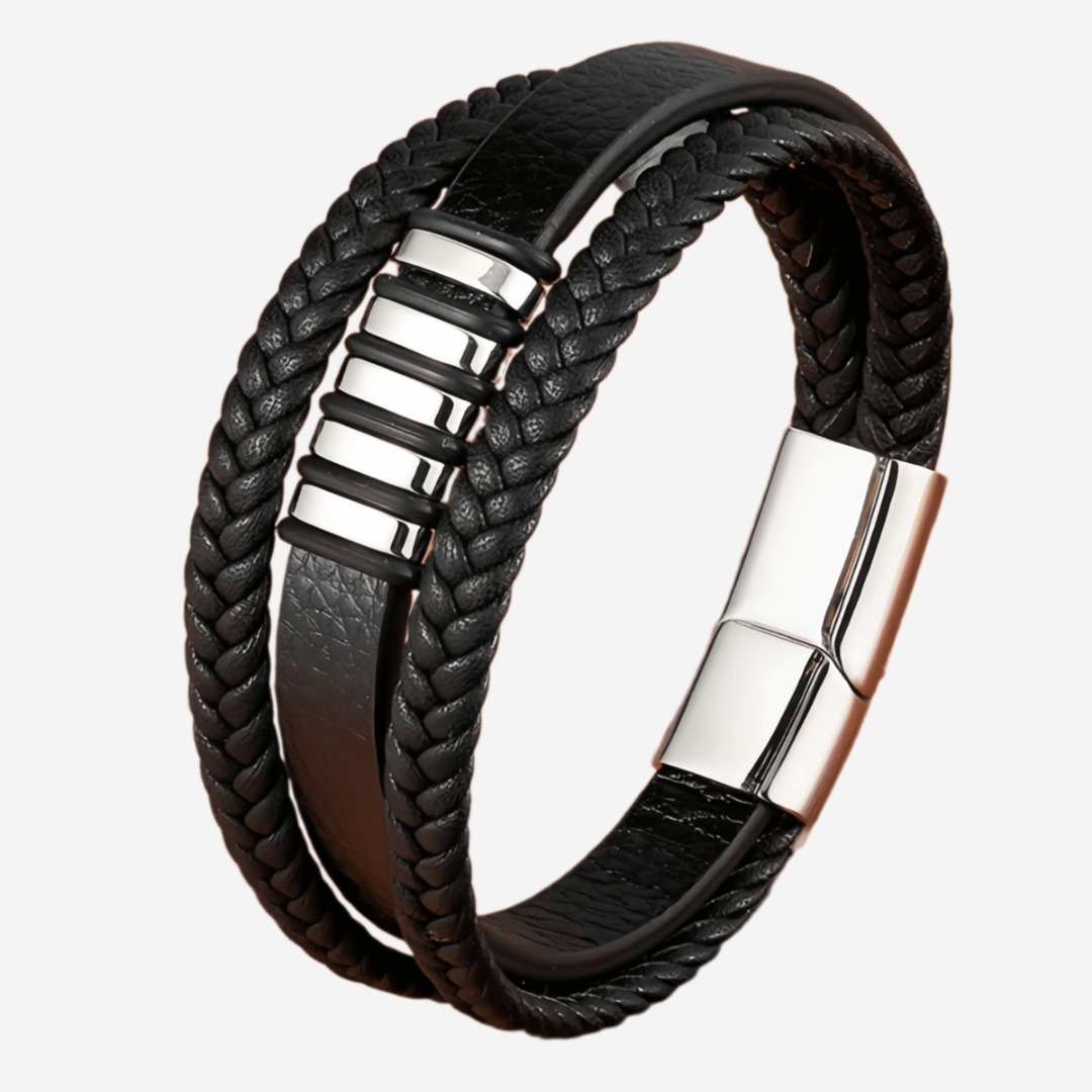 Мужской браслет изготовлен из высококачественной натуральной кожи и отличается элегантностью и изысканностью. Магнитная застежка обеспечивает простоту и удобство использования и идеально подходит для повседневного ношения. Браслет изготовлен вручную, что придает ему уникальный характер и отражает мастерство изготовления. Отделка представляет собой тонкую тройную полировку, гарантирующую гладкую и приятную поверхность. Благодаря используемым материалам премиум-класса и технологии обработки цвет браслета не испортится со временем, сохраняя безупречный внешний вид в течение длительного времени. Это идеальный выбор для мужчин, которые ценят качественный, прочный и стильный аксессуар, подходящий для любого случая.