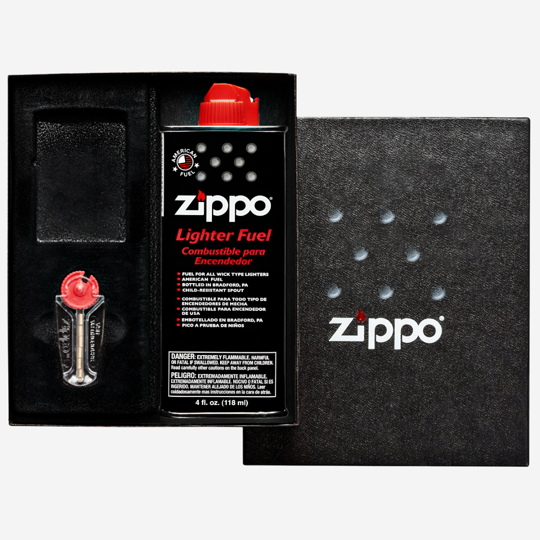 Подарочный набор Zippo представляет собой идеальный подарок для ценителей качественных зажигалок. В набор входит пакет с 6 кремниями и бензином для зажигалок Zippo объёмом 125 мл, что обеспечивает долгосрочное использование зажигалки. Также, блягодаря специальному месту, вы можете добавить любую классическую зажигалку Zippo, чтобы создать особенную презентацию и сделать подарок еще более запоминающимся. Подарочный набор поставляется в стильной и качественной упаковке, что делает его готовым к подарку сразу после покупки.