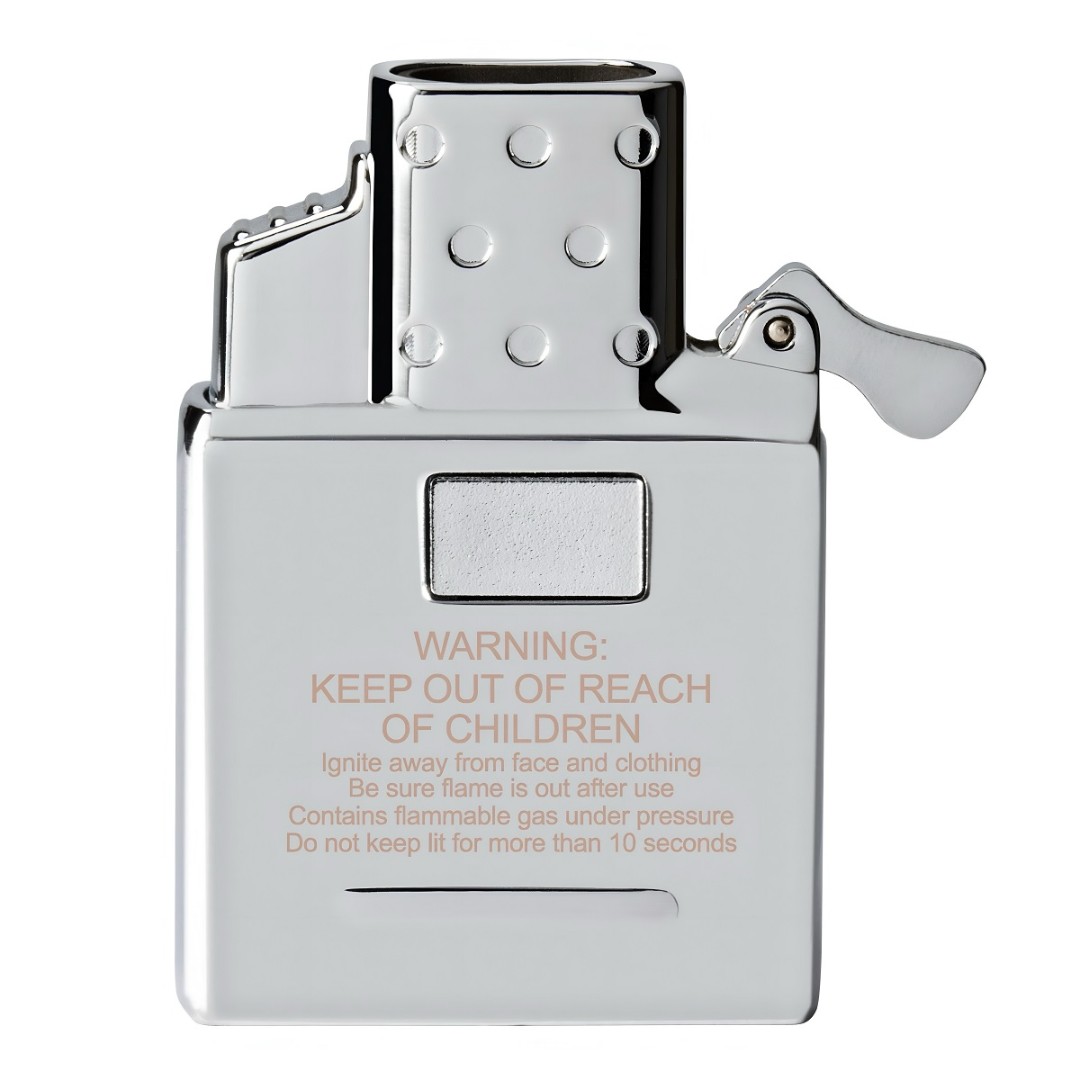 Сделайте ещё один шаг в процессе индивидуальной настройки, выбрав подходящую вставку. В этой новой вставке для зажигалки одним нажатием кнопки возникает одиночное ярко-синее пламя. Вставка с одинарным пламенем предлагает источник тепла без запаха, который служит дольше, чем раньше, и имеет лучшую в своём классе гарантию. Новая коллекция вставок для зажигалок Zippo, включая этот вариант с двумя турбинами, идеально подходит для любого классического футляра для зажигалок Zippo.