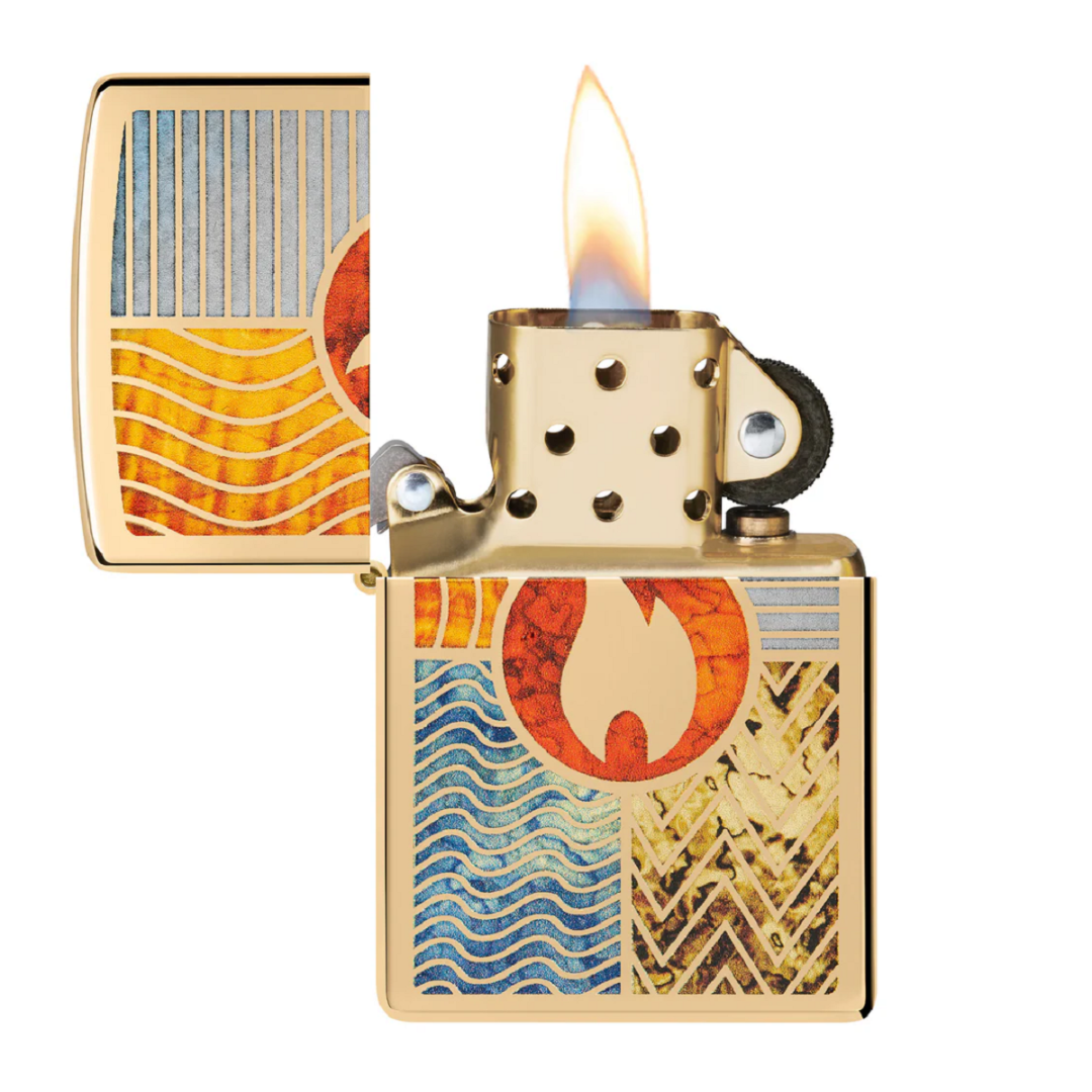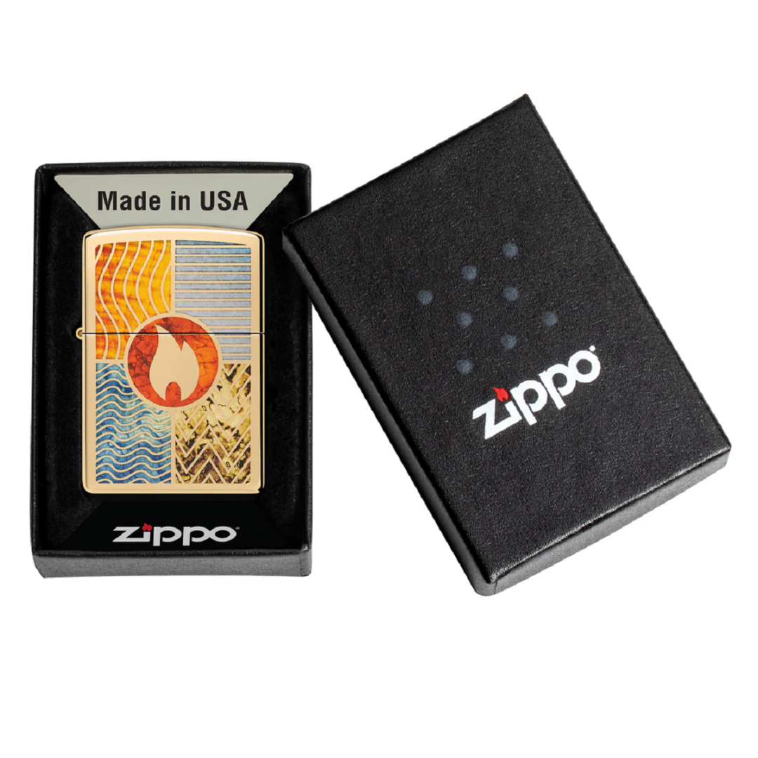 Погрузитесь в уникальный мир элементов с этой зажигалкой из полированной латуни, украшенной великолепной мозаикой в дизайне Fusion. В центре внимания - классический значок пламени Zippo, окруженный изображениями Земли, Ветра, Огня и Воды, создающими мерцающий эффект. Эта потрясающая зажигалка станет не только прекрасным аксессуаром, но и неповторимым символом вашего стиля и взглядов. Поставляется в стильной подарочной упаковке, готовая стать идеальным подарком для себя или близкого человека. Оригинальная ветрозащитная зажигалка Zippo с характерным щелчком Zippo гарантирует надежную работу в любых условиях благодаря цельнометаллической конструкции и ветрозащитному дизайну. Рекомендуем использовать оригинальное топливо для зажигалок Zippo премиум-класса, кремень и фитиль для оптимальной производительности. Произведена с гордостью в США с пожизненной гарантией.