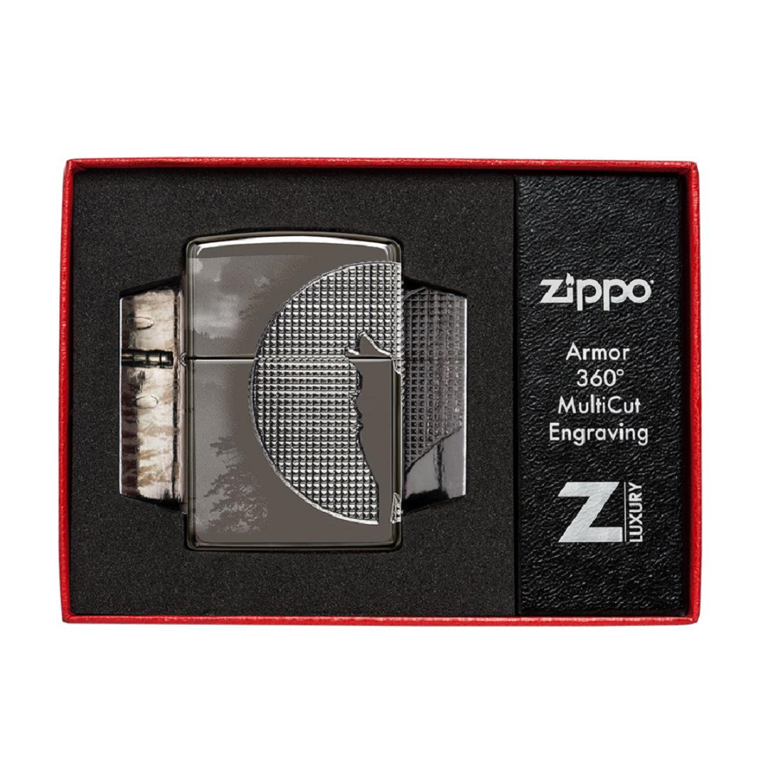 Погрузитесь в волшебство дикой природы с этой потрясающей зажигалкой Armor® Black Ice. Луна, созданная с помощью процесса MultiCut, наполняет этот инструмент текстурированным дизайном, в центре которого находится силуэт воющего волка. Реалистичные изображения леса и деревьев оживают благодаря процессу Photo Image 360°. Зажигалка поставляется в подарочной упаковке и гарантирует надежность и долговечность благодаря оригинальной ветрозащитной конструкции Zippo. Рекомендуем использовать оригинальное топливо, кремень и фитиль для достижения оптимальных результатов. Сделана с гордостью в США с пожизненной гарантией.