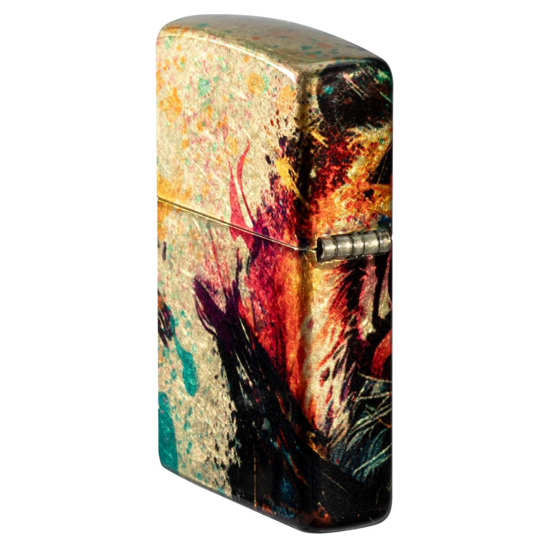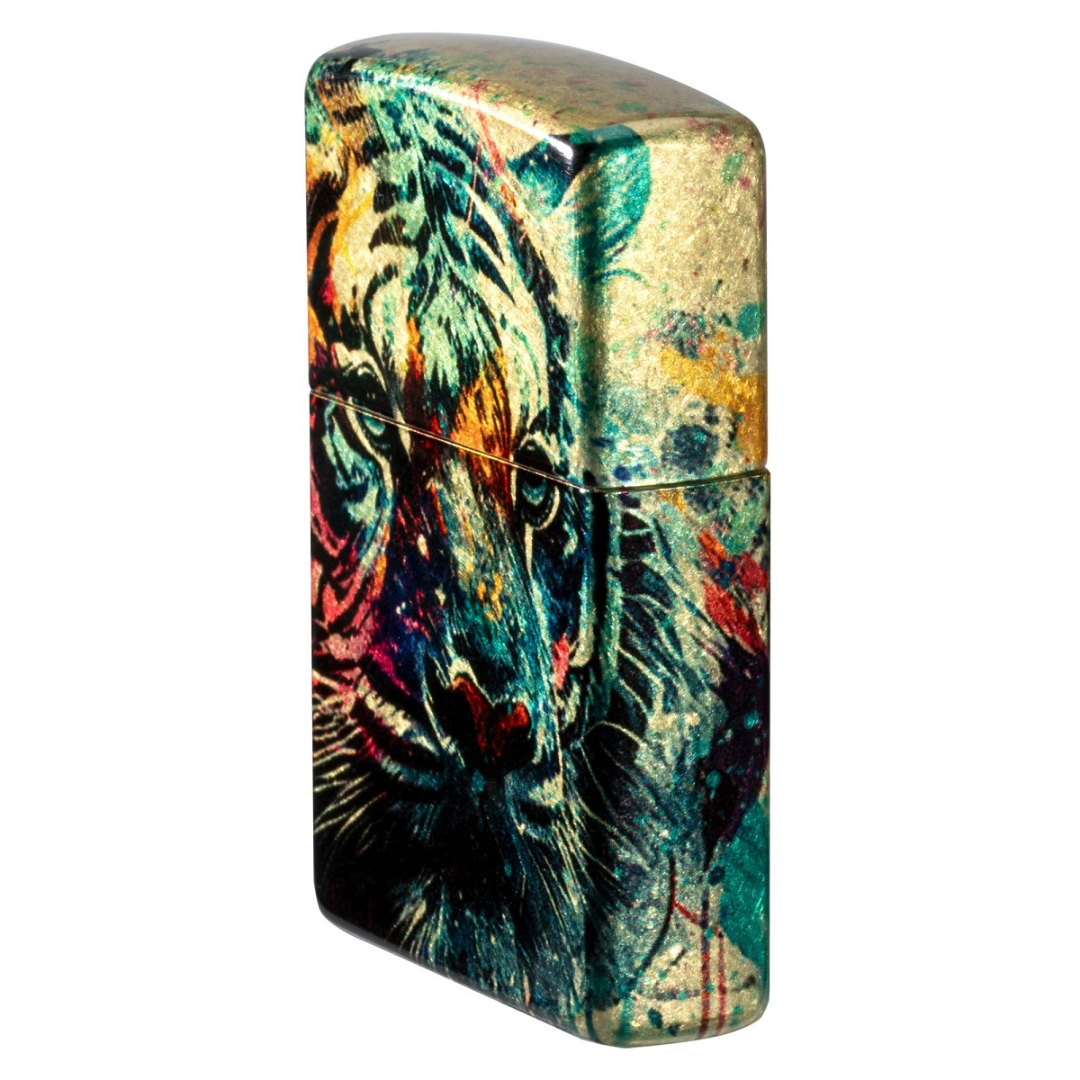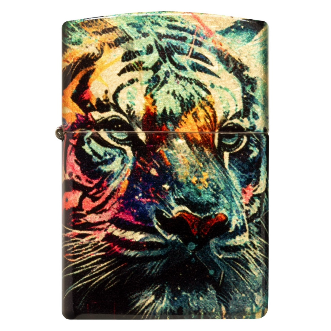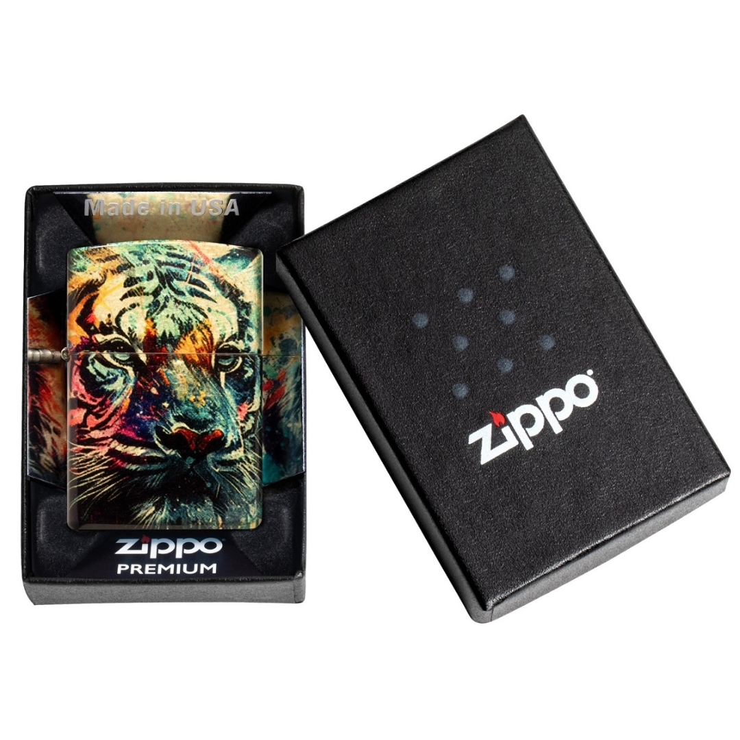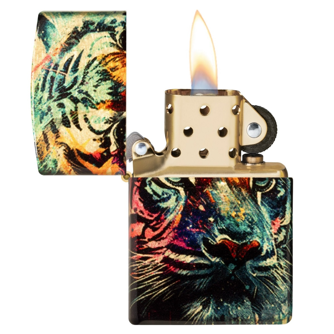 На фоне мерцающей латуни, озарённой яркими вспышками цвета, царственный портрет тигра охватывает все стороны корпуса этой зажигалки, выполненной по технологии 540 Fusion. Дизайн вдохновлён эстетикой уличного искусства и придаёт изделию выразительность и динамику. Зажигалка поставляется в подарочной коробке. Это оригинальная ветрозащитная зажигалка Zippo с фирменным металлическим щелчком. Прочная металлическая конструкция и защита от ветра обеспечивают стабильную работу практически в любых условиях. Зажигалка многоразовая, рассчитана на длительное использование. Для оптимальной работы рекомендуется использовать оригинальное топливо, кремни и фитили Zippo. Сделано в США с пожизненной гарантией.