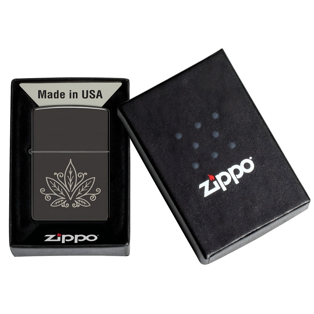 Эта классическая зажигалка Zippo в глянцевом чёрном корпусе украшена изящным листом каннабиса, выполненным с помощью тонкой лазерной гравировки в стиле зентангл. Детализированный рисунок придаёт модели утончённый и современный характер. Зажигалка поставляется в фирменной подарочной коробке, полностью выполнена из металла и обладает легендарной ветрозащитной конструкцией с узнаваемым щелчком Zippo. Многоразовая, рассчитанная на долгие годы использования, она производится в США и сопровождается пожизненной гарантией. Для наилучшей работы рекомендуется использовать оригинальное топливо, кремни и фитили Zippo.