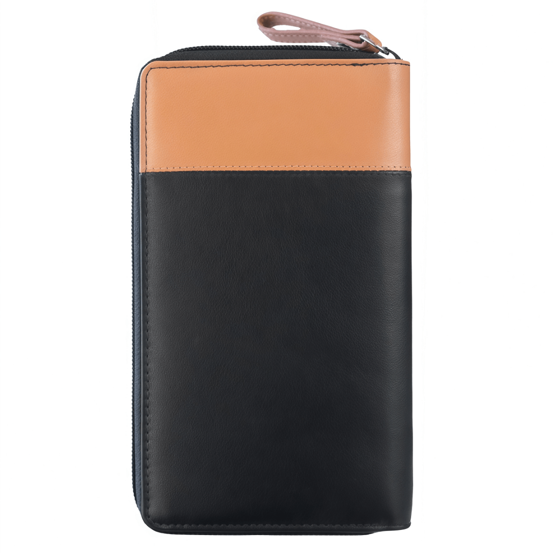 Женский кошелек Greenburry DUETT — это гармония стиля, функциональности и надежности. Выполненный из высококачественной натуральной кожи, он очаровывает мягкой текстурой и теплым природным оттенком. Модель представлена в элегантном двухцветном исполнении — сочетание бежевого и черного смотрится стильно и современно. Внутри предусмотрено всё для удобной организации: 17 отделений для кредитных карт, одно отделение для монет, два вместительных отсека для купюр и дополнительный накладной карман. Альбомный формат делает кошелек особенно практичным, а надежная застежка-молния обеспечивает сохранность содержимого. Для дополнительной безопасности изделие оснащено RFID-защитой, предотвращающей считывание личных данных. Этот кошелек — не просто аксессуар, а стильный и надежный спутник на каждый день, сочетающий эстетику, практичность и современный дизайн.