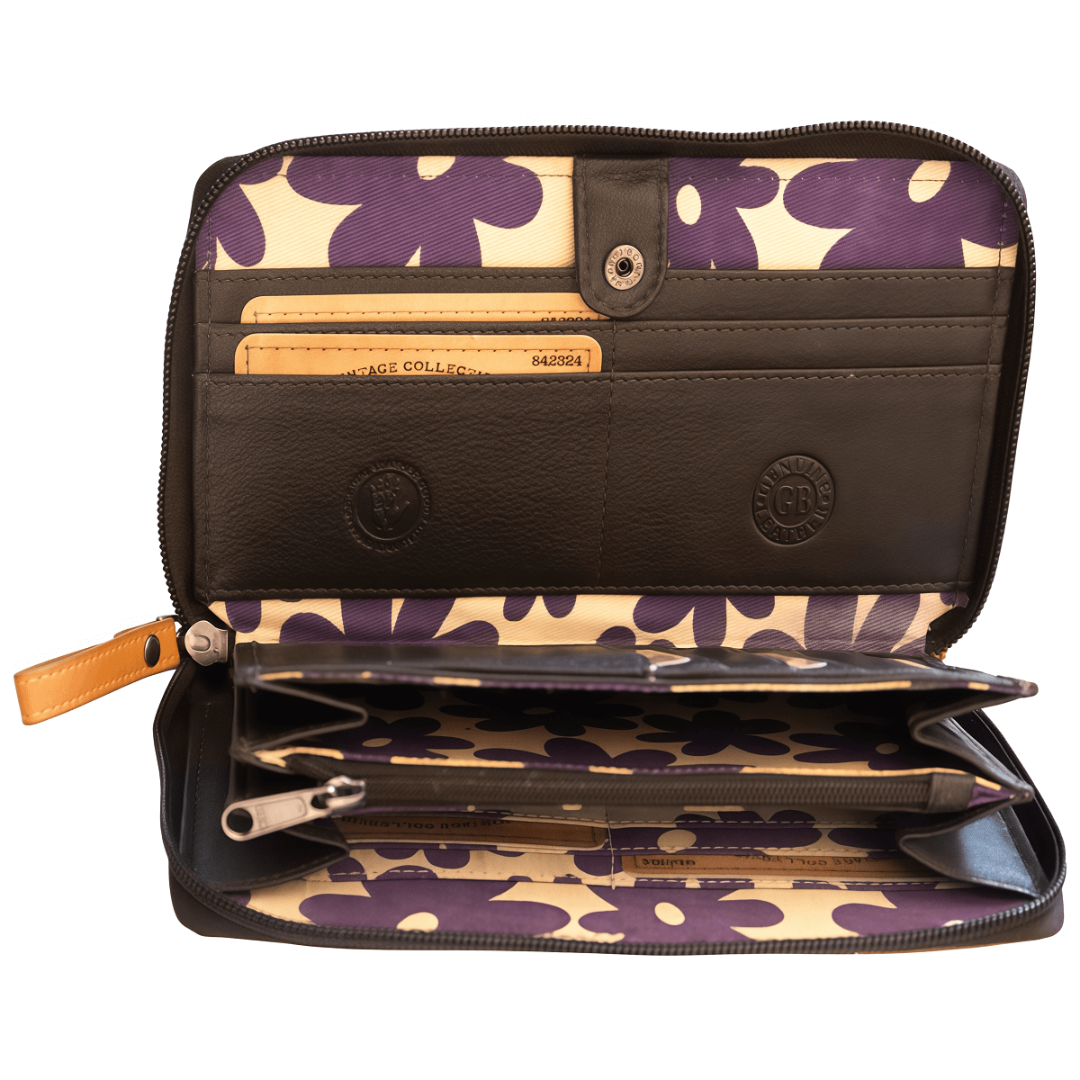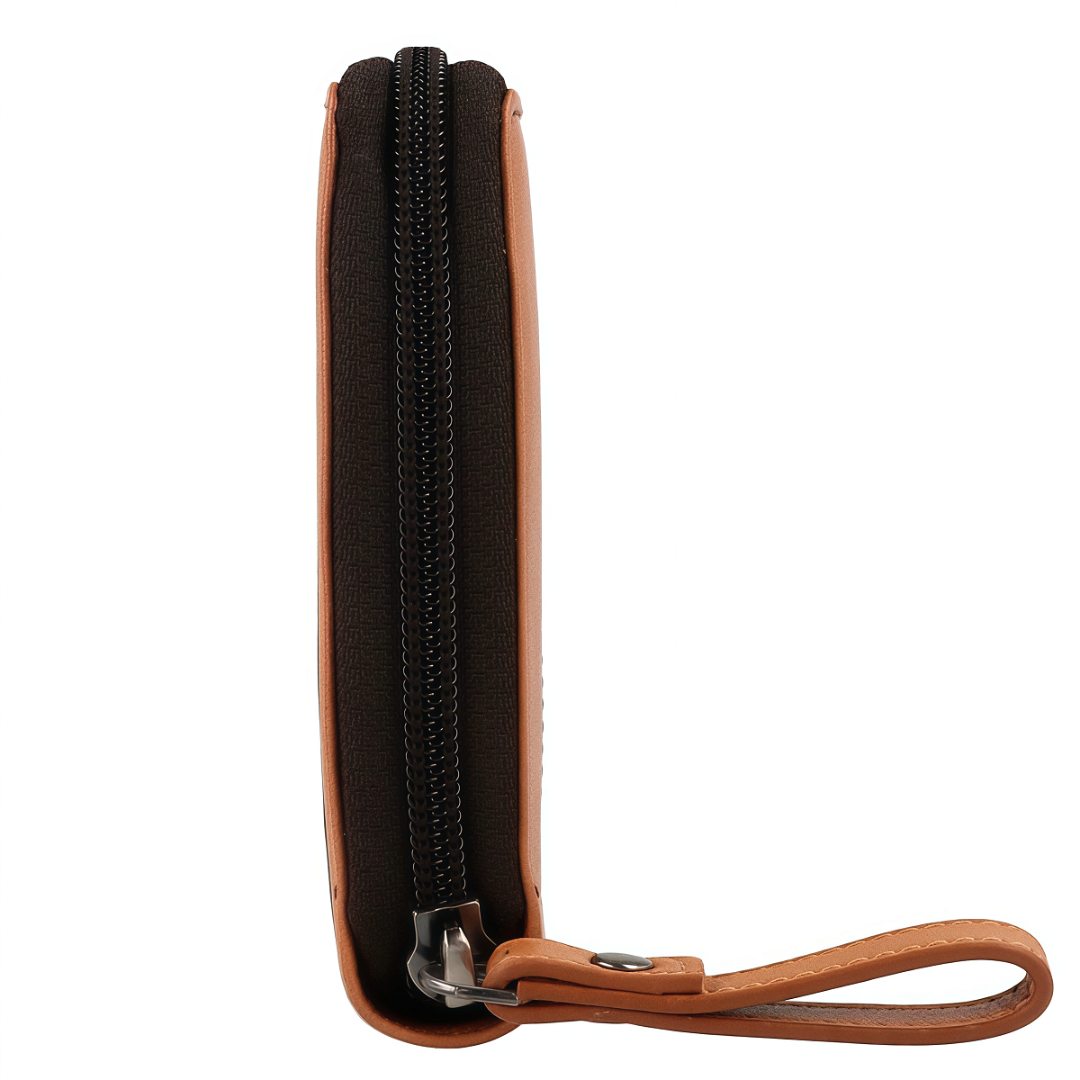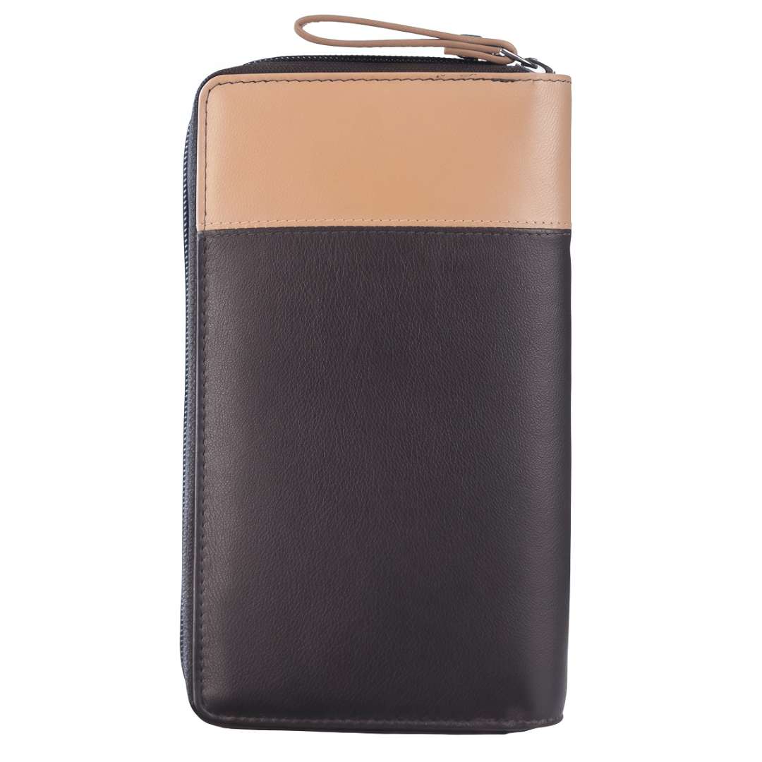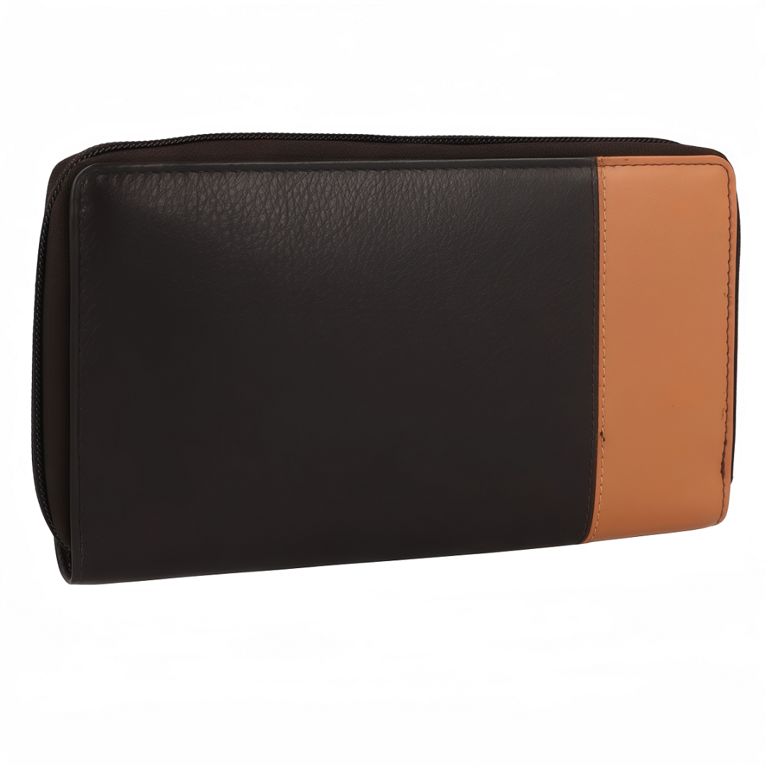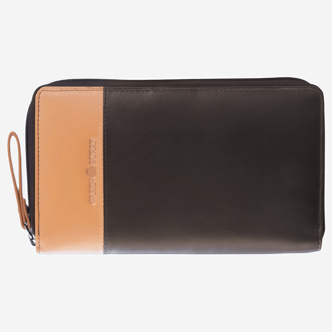 Женский кошелёк Greenburry DUETT удачно сочетает элегантность, практичность и надёжность. Выполненный из высококачественной натуральной кожи, он выделяется мягкой текстурой и тёплым натуральным оттенком. Двухцветное оформление в бежево-коричневой гамме придаёт модели современный и утончённый вид. Внутри предусмотрена продуманная организация: 17 слотов для карт, отделение для монет, два просторных отсека для банкнот и дополнительный накладной карман. Горизонтальный формат делает кошелёк удобным в использовании, а надёжная молния обеспечивает сохранность содержимого. Дополнительную безопасность гарантирует встроенная RFID-защита, которая предотвращает несанкционированное считывание данных. Этот кошелёк — больше, чем аксессуар: это стильный и практичный спутник на каждый день.
