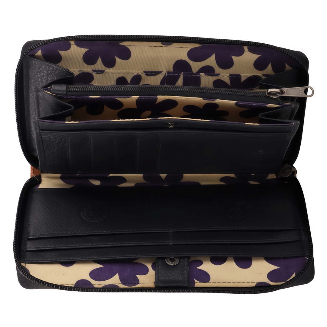 Женский кошелёк Greenburry DUETT умело сочетает элегантность и практичность на каждый день. Изготовленный из натуральной кожи высочайшего качества, он выделяется мягкой фактурой и тёплым, естественным видом. Двухцветное оформление — сочетание бежевого и тёмно-синего — придаёт модели современный и изысканный характер. Внутренняя организация продумана до мелочей: 17 отделений для карт, отдельный отсек для монет, два вместительных отделения для купюр и дополнительный накладной карман. Горизонтальный формат делает кошелёк удобным в использовании, а надёжная застёжка-молния обеспечивает сохранность содержимого. Кроме того, встроенная RFID-защита предохраняет личные данные от несанкционированного считывания. Таким образом, этот кошелёк — не просто аксессуар, а элегантный и надёжный спутник на каждый день.