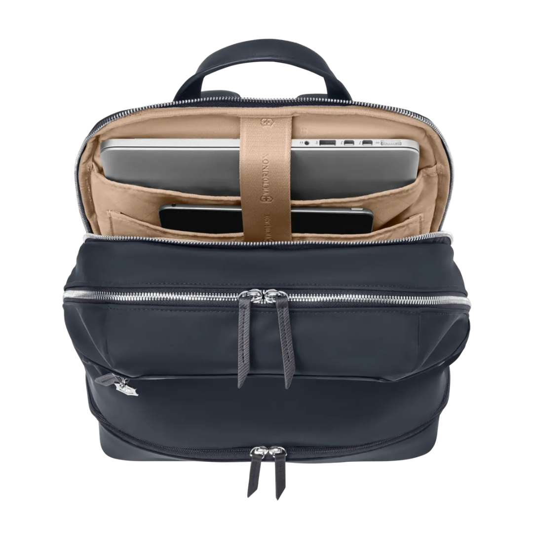 Рюкзак для ноутбука 15" с карманом для планшета 10" — идеальный выбор для тех, кто всегда в движении и нуждается в сумке, которая успевает за их ритмом жизни. Victoria Signature Deluxe предлагает интуитивную организацию всех необходимых вещей, как для работы, так и для личного пользования, благодаря гибким отделениям, максимально увеличивающим пространство. Кроме того, для вечерних выходов съемный мешочек легко превращается в элегантный клатч, который удобно носить на запястье. Изготовленный из высококачественных материалов и дополненный изысканными женственными деталями, этот рюкзак сочетает в себе стиль и функциональность. Разделитель на молнии обеспечивает быстрый доступ к нижнему отделению, а скрытый задний карман надежно хранит ценные вещи. С объемом 18 литров, этот рюкзак станет идеальным спутником для активной и элегантной жизни.